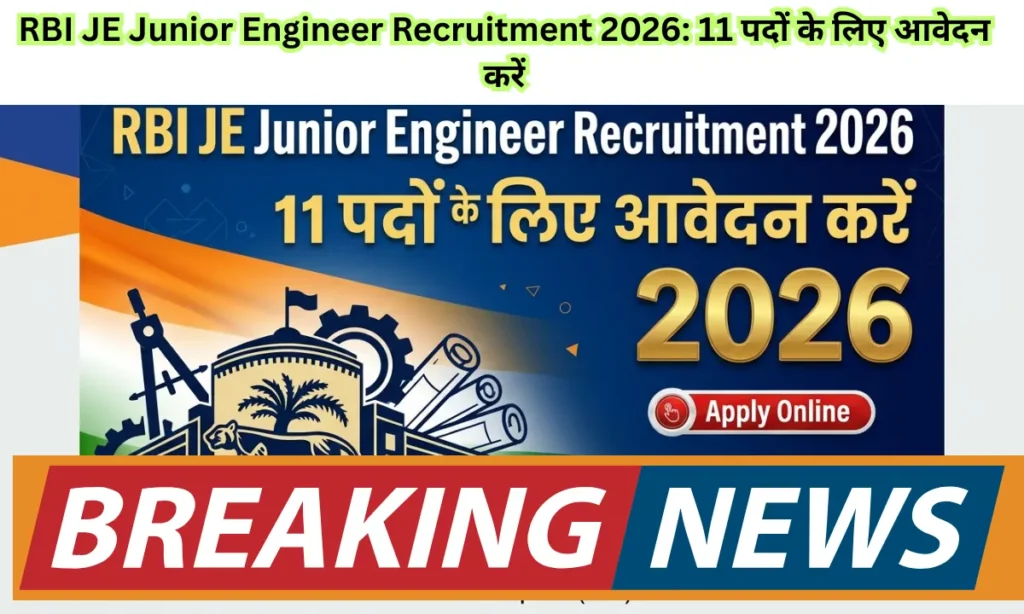 RBI JE Junior Engineer Recruitment: भारतीय रिजर्व बैंक के द्वारा ऑफिशियल तौर पर जूनियर इंजीनियर के 11 पदों पर नोटिफिकेशन
